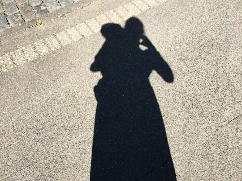 Mein (jüngerer) Sohn und ich. Noch wohnen wir als Familie in Köln. Die Sonne im Rücken malt dieses Porträt.